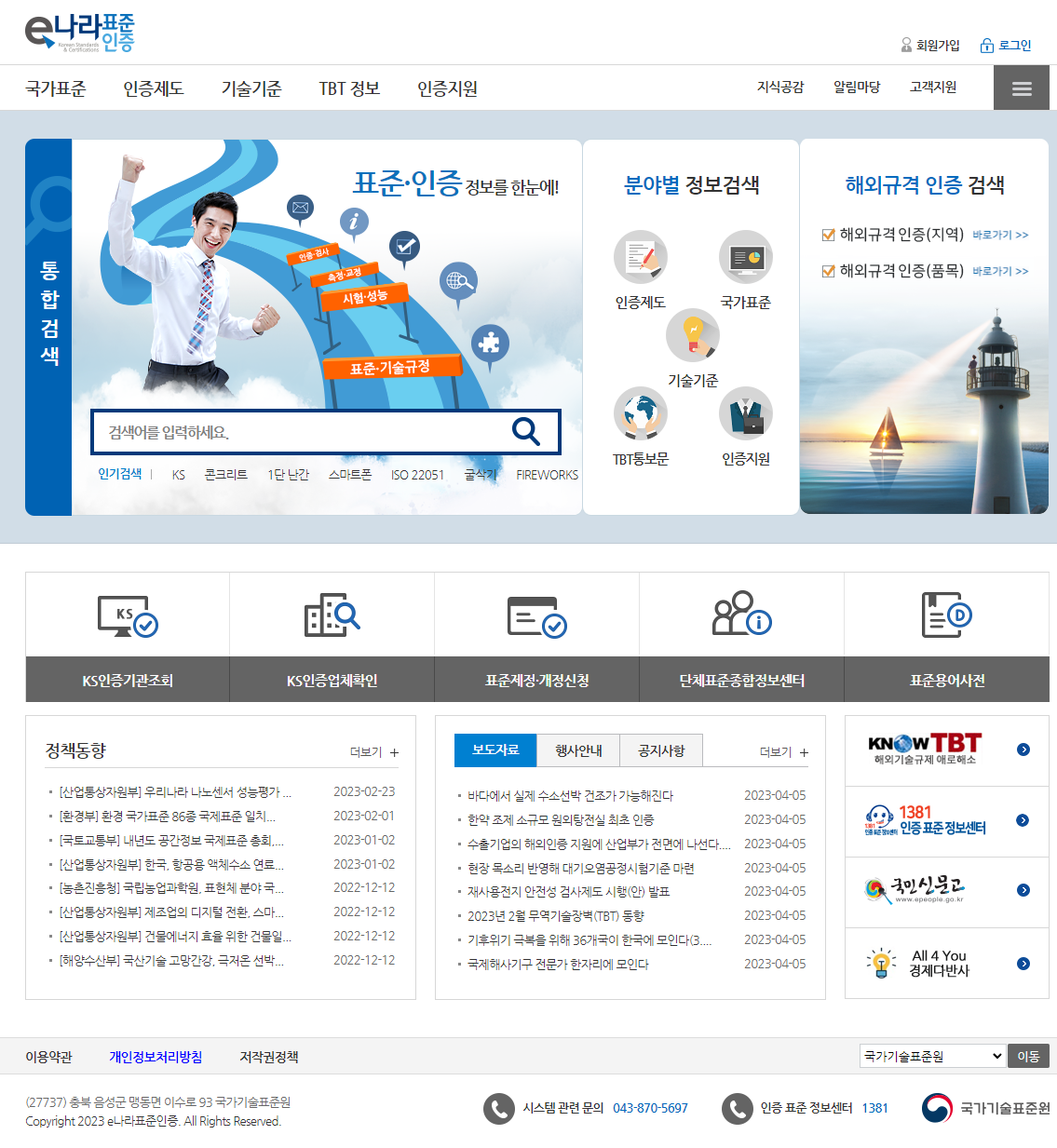 다만, ISO의 경우 e나라 표준인증 사이트에서 표준을 보는 것이 가능하므로, 해당 사이트를 우선적으로 방문해서 찾고자 하는 표준을 볼 수 있는지 확인해 보시는 것이 좋습니다. 아래는 e나라 표준인증 메인 화면 입니다.