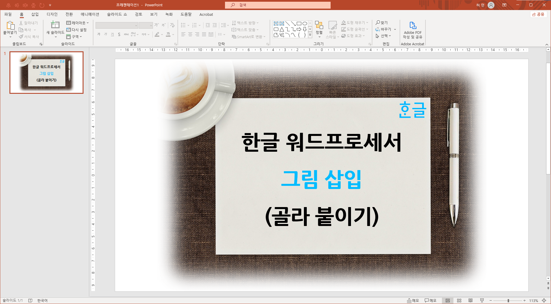 오늘은 한글 워드프로세서 그림 삽입 - 골라 붙이기에 대한 이야기를 하겠습니다.