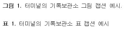 아래 그림을 보면 표캡션은 표 위에, 그림 캡션은 그림 아래에 나와 있는 것을 볼 수 있습니다.
