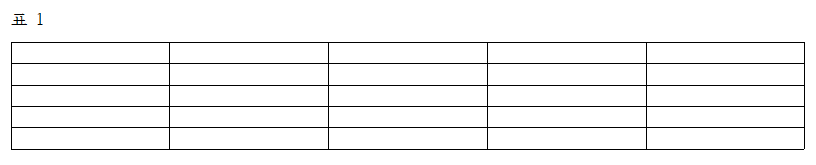 같은 방식을 이용하면 표도 캡션을 넣을 수 있습니다. 아래는 한글 워드프로세서에서 표를 만들고 난뒤, 표를 클릭 후 우클릭 → 캡션넣기를 통해 표 캡션을 넣은 뒤 그림입니다.