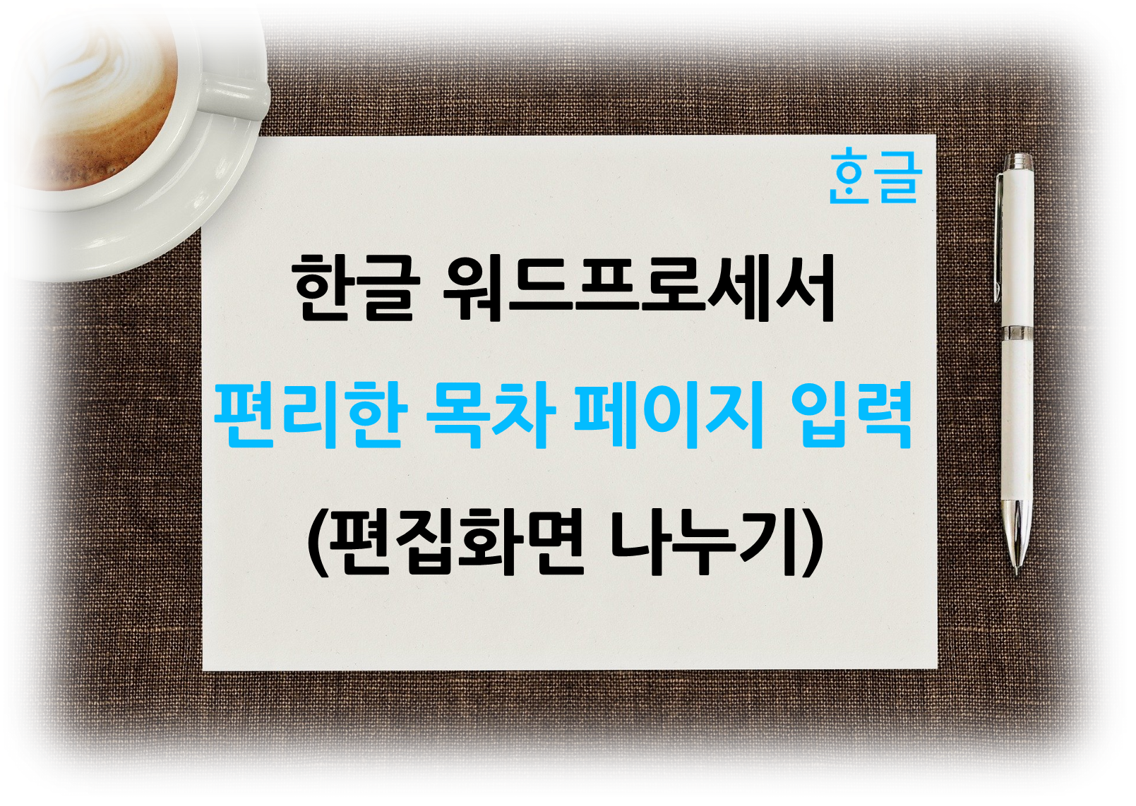 오늘은 한글 워드프로세서 - 편리한 목차 페이지 입력 방법 (편집화면 나누기)에 대한 이야기를 하겠습니다.