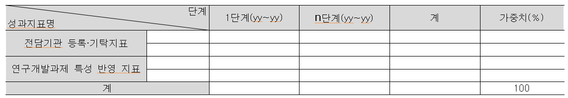 아래는 예시 그림 이고 정부 R&D 사업계획서 작성을 위해 정량적 성과 지표와 결과물의 성능지표 양식을 파일로 첨부 한다.