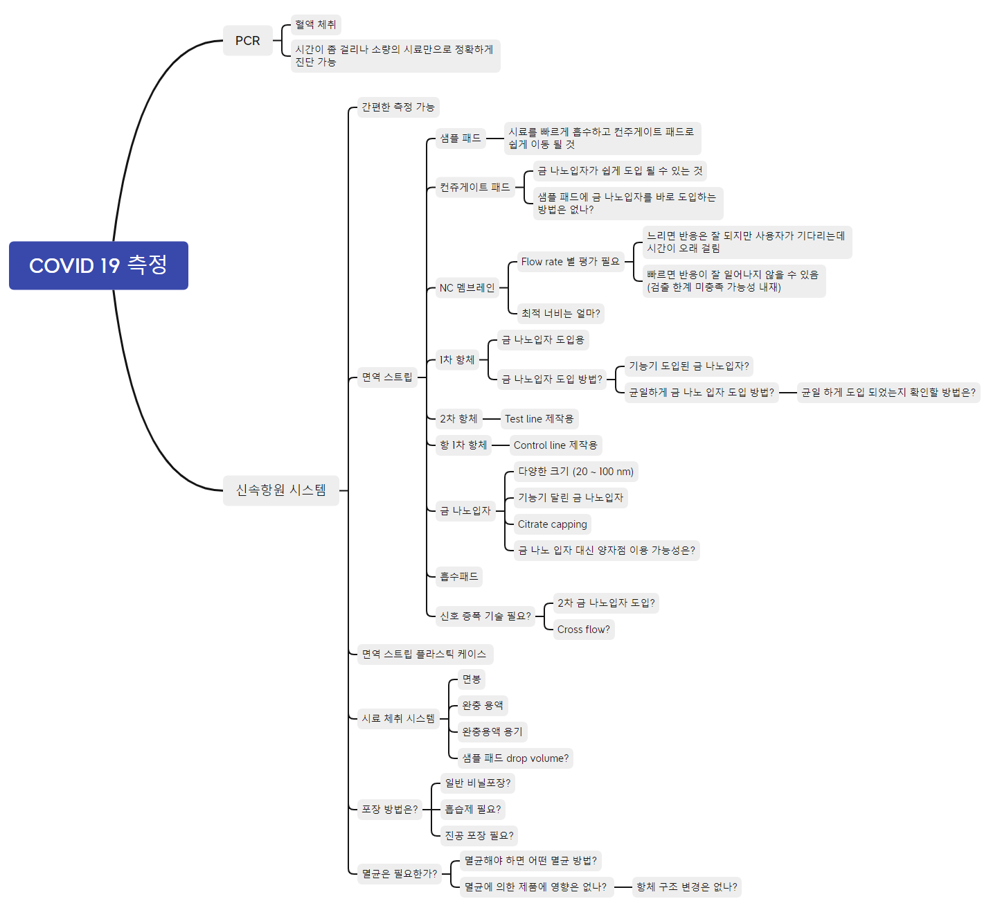 그렇다면 제품을 만들기 위해 필요한 7개 요소와 콧물 채취 시스템에 필요한 요소 2개로 부터 연구개발 목표를 뽑아낸다.