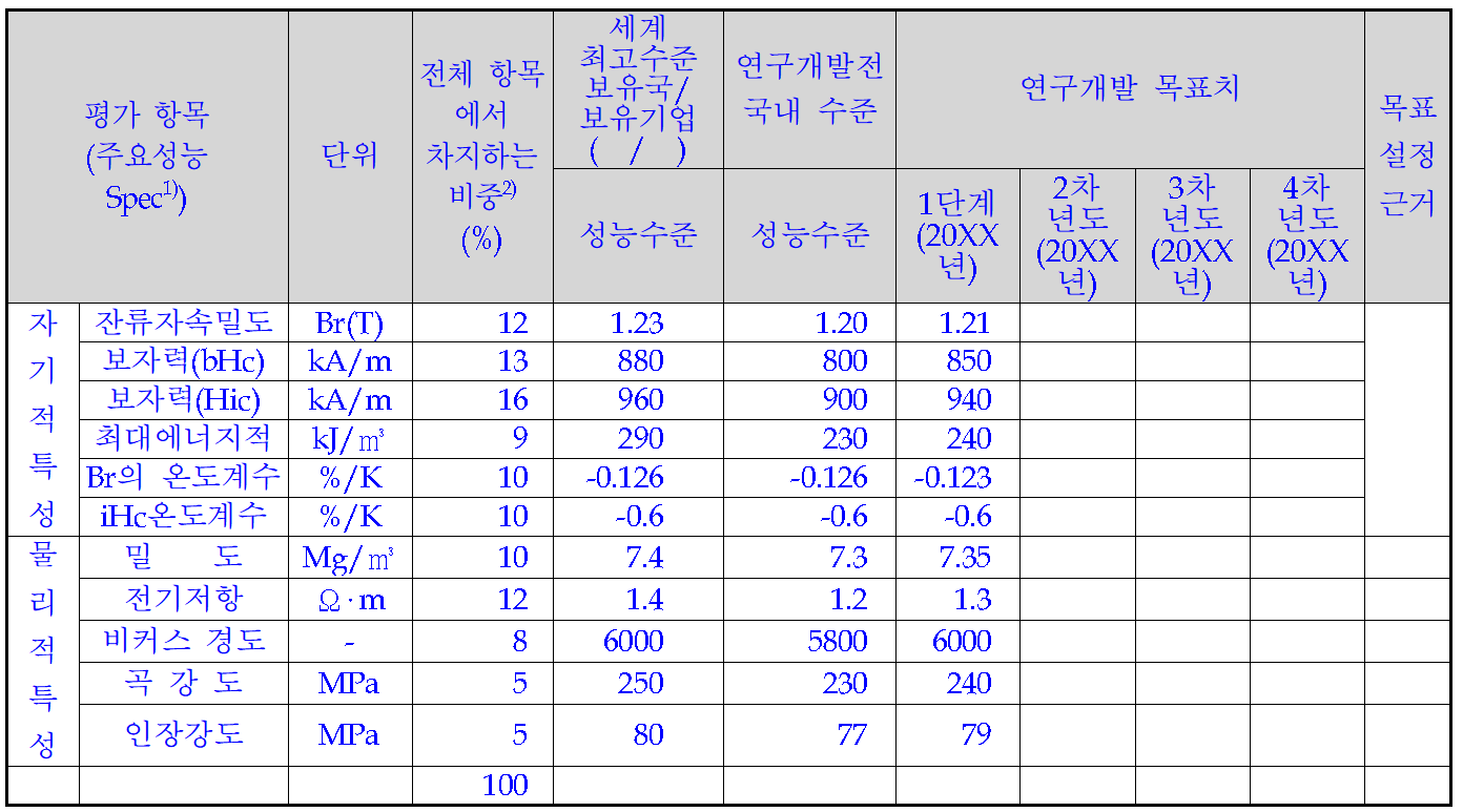 1) 연구개발과제의 최종 목표: 연구개발하고자 하는 지식, 기술(또는 공정) 등의 정성적 또는 정량적 목표를 기재합니다.