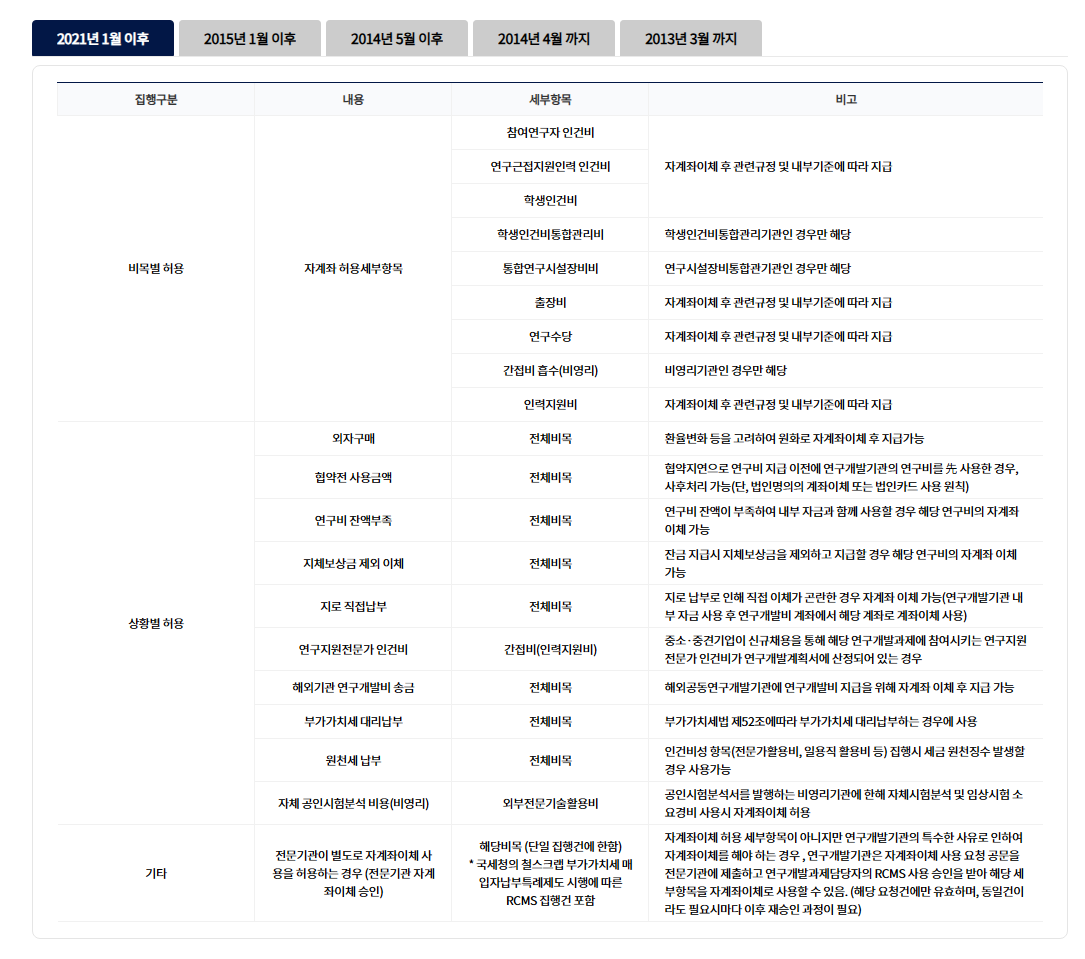 RCMS(Real-time Cash Management System)에서 자계좌 이체 허용 항목은 RCMS 포털의 이용가이드 또는 연구비 사용 관련 메뉴에서 확인할 수 있습니다.